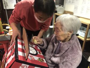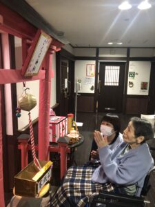 お正月🎍になると毎年恒例のさくら🌸神社⛩️が出現します😊今年も入居者様方とお参りしてきました😁⭐️