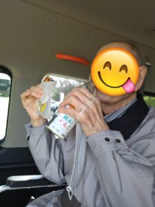 次に向かう車内ではジュースとお菓子でおやつタ〜イム🕒