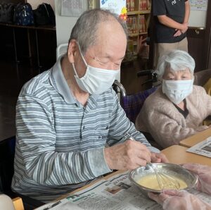 「久しぶりだなや、ホットケーキ混ぜるの・・・(笑)」