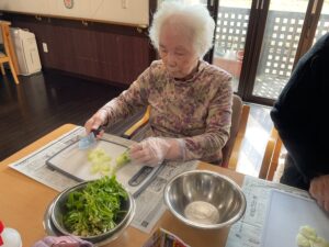 ★舞茸をほぐし セリ、ネギを食べやすく切ります。