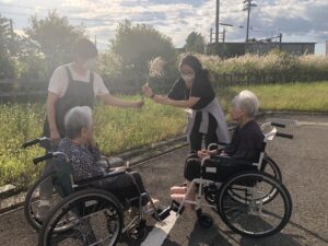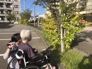 中々晴れ☀️の日が続きませんが、秋晴れの日に入居者様方と施設周辺を散歩してきました😁